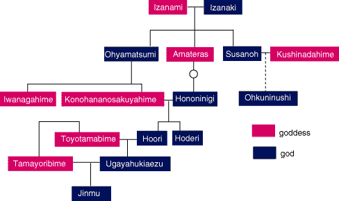Each god has a lot of brothers, sisters, and children which are not shown here.