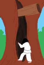 大木に割れ目を作ってクサビで止め、オオクニヌシを中に入れると、クサビを抜いてバン!と割れ目をふさいでしまったわけです。当然、オオクニヌシはつぶれて死んでしまいます。ところが今度もまた母親がオオクニヌシを生き返らせます。