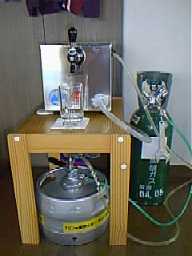 - 生ビールサーバー。ニットク製。とりあえず、サッポロ対応品です。なぜサッポロ対応品かといいますと、樽につけるヘッドがキリンとそれ以外で異なるからです。サッポロ対応品は、他にアサピ、サントリー等と互換があります。
