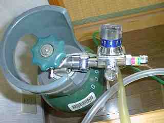 - 炭酸ガスボンベ5Kg。大体7000円くらいです。ただし、ボンベ代5000円は保証金なので、ガス代は正味約2000円です。ミニガスは74gで500円位かと思いますので、沢山飲む人はボンベの方がオ・ト・ク。