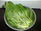 まず小松菜の根を切り落とし水で洗います。さっと塩ゆでしてもよいでしょう。その方法は皆さんの好みでどうぞ。