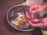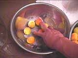 準備ができたら、まず消毒済みのボールに焼酎をたらし、そこに一握りの塩(前もって計っておいたもの)を入れます。そしてそこに梅のへたをたけ串を使ってとりながら数個づつ入れてゆきます。当然ですが、手も薬用石鹸で洗いよく水ですすいだ後、焼酎を擦り込んで消毒しておきます。ここまで読んだらおわかりと思いますが、梅干し作りでのほとんどの場合の失敗はカビで、これを防ぐために梅が触れる全てを焼酎で殺菌するのが最大のポイントとなります。