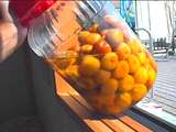 全部つみ終わったらおしまい。これで一安心です。一番上に残った塩を全てまきます。またボールに付着した分を目分量(大体軽く一握りからその半分くらい)を追加してふり、蓋をして完了です。仕込みの出来上がりはこんな所です。これで4〜6週間つけこんでおきますが、風通しの良い比較的涼しめな場所に置いておきましょう。また2、3日で梅酢が上がってきます。1週間位でビンの9分めくらいまでに上がりますが、一番上段にある梅は梅酢が浸りませんので、1日1回ビンを斜めにして梅酢をかけてやります。夏までこうして可愛がってやりますとおいしい梅干しの仕込みが終わります。