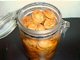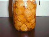 写真のようなガラスビンに詰めて冷蔵庫で後損しています。干したてよりも1月くらい寝かせたほうがうまみのよくまわりますので、しばらくそのままにしておきます。でもちょっとづつつまみ食いをしてしまうので、結構なんだかんだ言って減ってしまいます。
