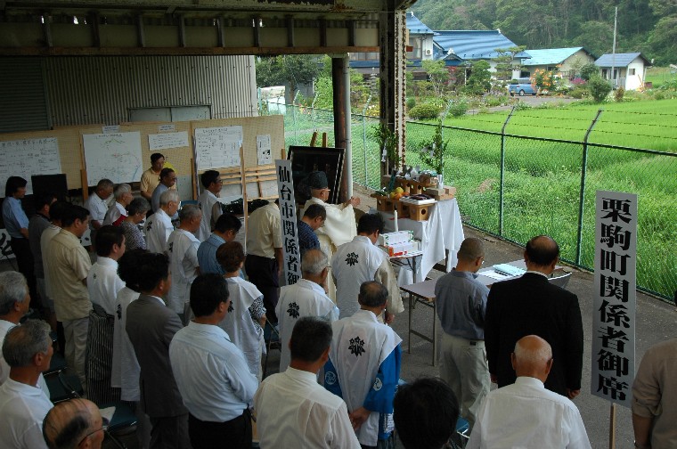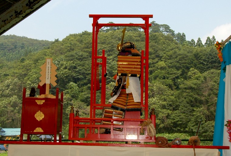 義経公の神輿・判官森の前に着座 午後2時半