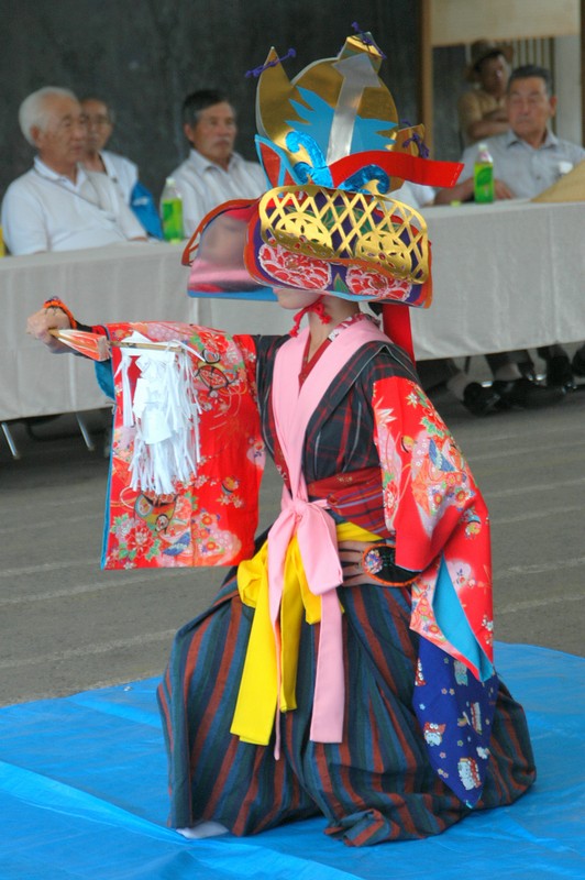トップバッターは、市立栗駒小学校生徒による「鳥舞」の奉納であった。栗駒は南部神楽 の伝統を色濃く残す神楽の里である。各地区には、「栗原神楽」や「猿飛来神楽」など、地域の名を冠した団体が意欲的に伝統の舞を継承保存している。最近で は旧暦の8月1日に行われる「東北神楽大会」が、今年で57回目を数え、まるで南部神楽のオリンピックの様相を呈する規模にまでになっている。これには岩 手県の早池峰神楽などが各地の一座が大挙して訪れるようになり、南部神楽の一大イベントとして、またこの地方の晩夏を彩る風物詩として全国的にも広く知ら れるようになった。