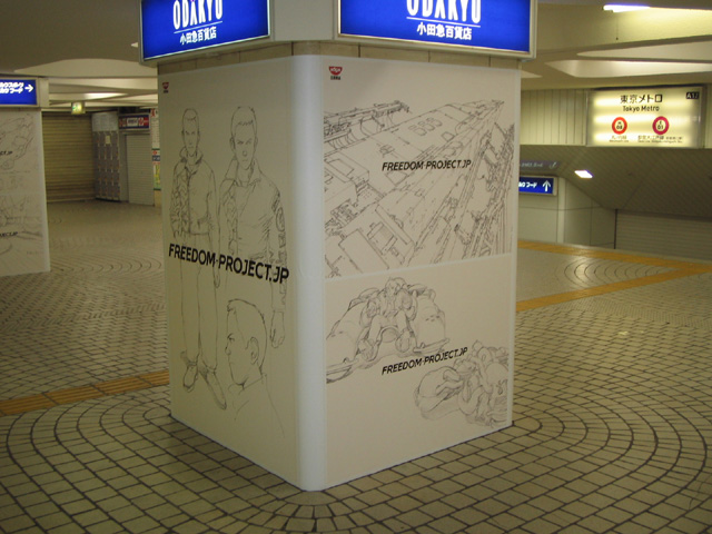 終電ギリギリの新宿駅西口でのポスター貼り作業に遭遇。なお、田園都市線渋谷駅にも同じポスターが貼られているとのこと。