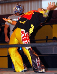歌舞伎の演技の一。相手の威力に圧倒されるさまを様式的に表現するもので、