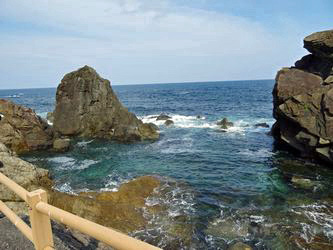 んで道が再び海岸線ルートへと戻ったところで、眼前に現れたのがこの巨岩。