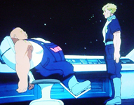 月の重力ですら苦にする程の巨漢デブなスエッソン、気に触った部下をその体重でイビるの図。