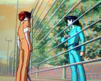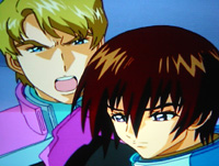 かつての親友・現在の敵同士が冊を境に向かいあうSEED屈指の情感シーン。