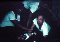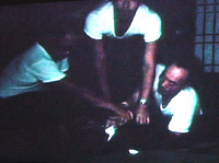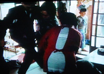 相手方のみならず、味方側全員からも取り抑えられる奥崎氏。
