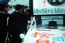 が、流石は奥崎氏。我動ぜずとばかり、わらわらと迫りくる警官隊をものともせず、