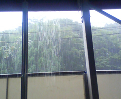 の豪雨に晒されつつ逃げ惑う人々を悠然と眺め楽しむことにしばし興じながら、至福の時を過ごす。