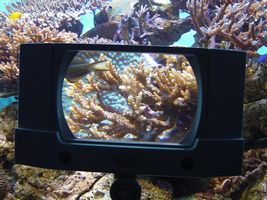 さて、水槽内に設置された拡大鏡を通して、その視覚範囲にある対象物を詳細に観察可能という