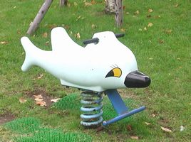 敷地内に設けられた公園にて、その手の施設に付き物の動物型ライドを発見、