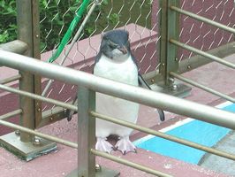 しかもまだ子供だ。見れば分かる通り、冊は大変低く、ミーはこのペンギンが冊から落ちはしないかとヒヤヒヤ、