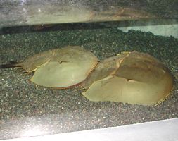 奥の方の水槽には、丁度プレイに興じている「カブトガニ」のカップルさんがいらっしゃった。