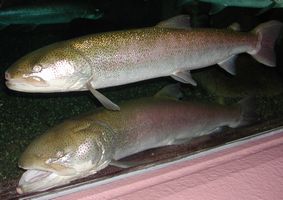 右の「イトウ」は自然環境ならともかく水族館では割と見かけやすい魚だが、