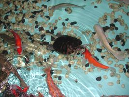 中央の「北海道」形状をしたプール内では、「金魚」や「鯉」、はたまた「お亀様」が優雅にお戯れあそばされていた。