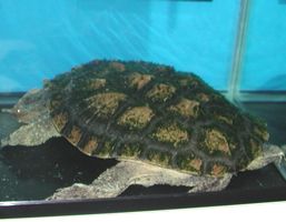 澱んだ淡水の底に潜み、甲羅にコケ類を付着させてのカモフラージュを行って、