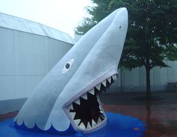 さっそく中にはいってみる。むう、なんたる狭さ、加えて妙にゴム臭い。そんな劣悪環境なサメの口の中にて