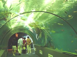 一番奥のドン詰まり部分にて、この水族館最大の売りと思われる「トンネル水槽」がお目見えした。