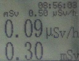 部屋中央に設置された測定器が指し示す数値は1時間あたり0.09μシーベルト。