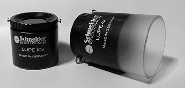 写真用のルーペで、フィルムを拡大して見るときに使用する。35mmフィルム用として、4倍と10倍の2つを使い分けている。4倍ルーペは、1コマ全体を見るときに用いる。すべての画像を順番に見ていき、気に入ったコマが見つかったら10倍ルーペでより拡大して見る。狙ったとおりにピントが合っているか、撮影ブレや被写体ブレがないかを確認するためだ。どちらのルーペも、周辺部まできちんと見える。安物では当たり前の歪曲歪みや周辺での色収差やボケが、本当に少ない。また、10倍クラスになると接眼部が狭くなりがちだが、このルーペは広くて使いやすい。写真撮影が好きで、リバーサルフィルムをよく使うなら、ぜひとも揃えておきたい2品である。ちなみに、2種類の倍率のルーペを使い分けるのは写真の常識。