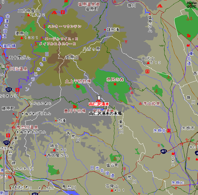 尚仁沢は塩谷町と矢板市の境にある. この湧水は流れを集めて東荒川ダムに注ぎ、