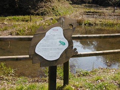 沢山のカエル達が賑やかに呼び交わす声を取り戻そうと、市民が力を合わせてこの池を掘りました。