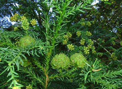 中央部に見える直径3cm程の球形は昨年5月に受精した雌花です。