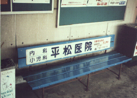 山陽電車・月見山駅 平松医院の広告のあるベンチ (92.12)
