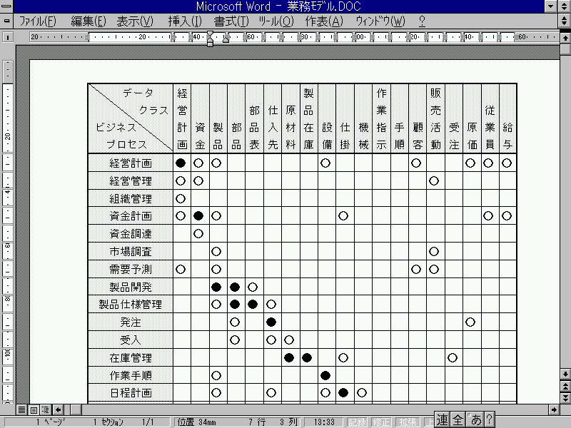 以下の図は情報アーキテクチャー、あるいは業務モデルと呼ばれるものである。