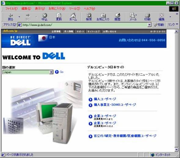 不特定多数に向けた自社事業や商品の紹介が行なわれている一般的なホームページとは異なり、デルコンピュータのホームページは当初から特定少数―自社の既存顧客、特にお得意先―に向けて発信されていた。