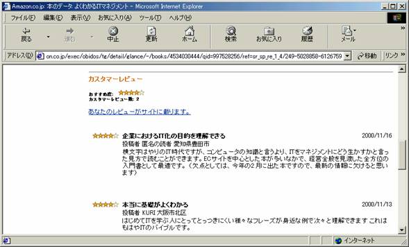 私は書籍検索の場合に表示される五つ星評価と読者からの書評こそアマゾンの特徴だと考えている。
