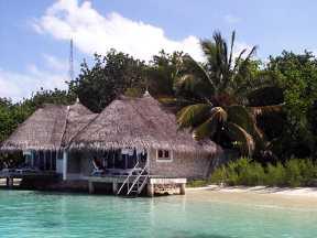 行く水上コテージを想像していましたが、ヴェリガンドゥ島の水上コテージは半水上